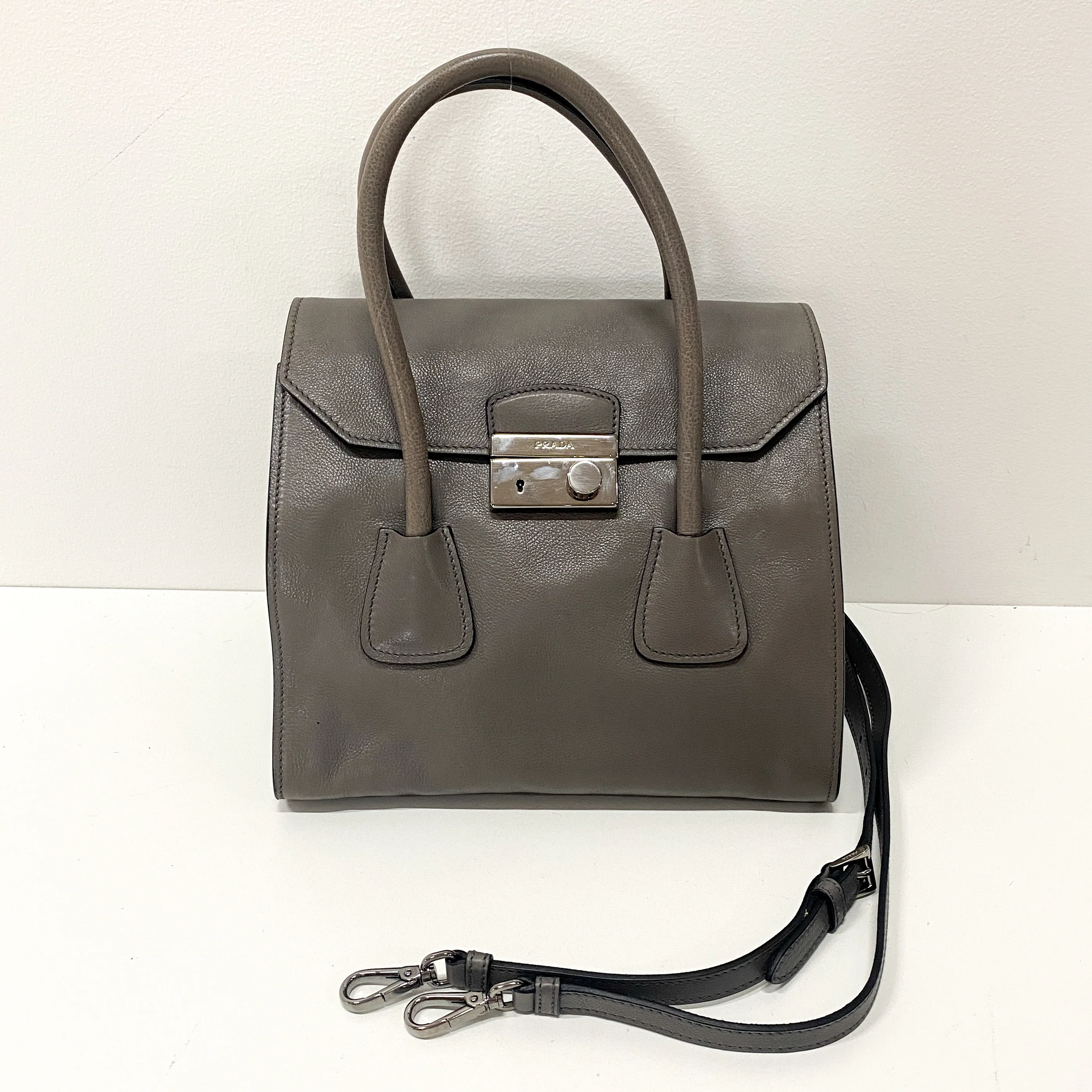 Grey Leather Two Way Bag—